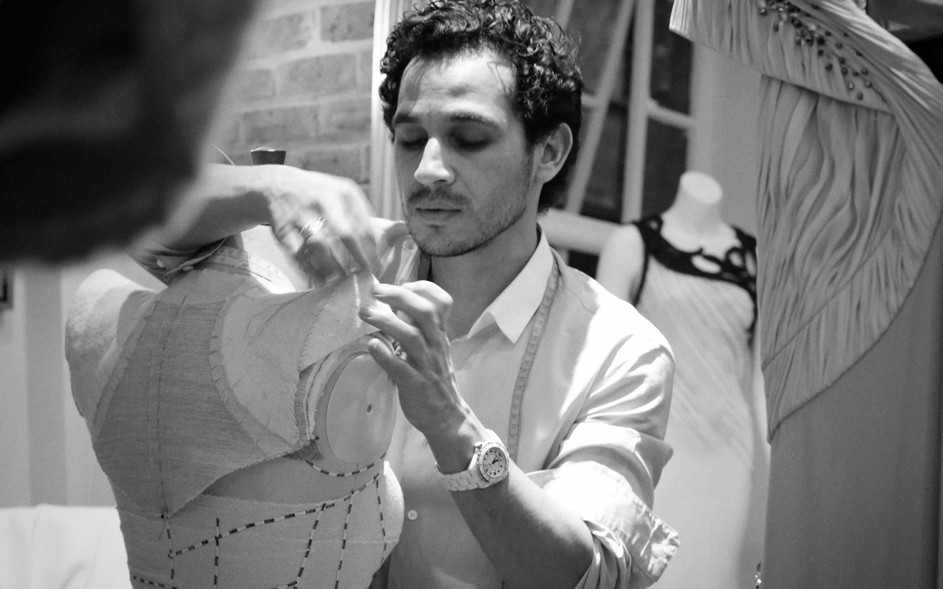 On the courses, students will be offered the opportunity to learn at our studio, as well as experience the real work environment of an Atelier. The modules will allow students to acquire key skills needed to create couture garments; learning to produce their own patterns, select fabrics, as well as the traditional way of cutting and marking the fabric. Students will be encouraged to develop and bring life to their own designs with the help of Juan Carlos Quintana. The couturier will assist students with the selection of the right couture finish for each of their designs, including how to press and hand-make finishes on a garment. These are all important components, hand finishes being over 75% of couture garments.